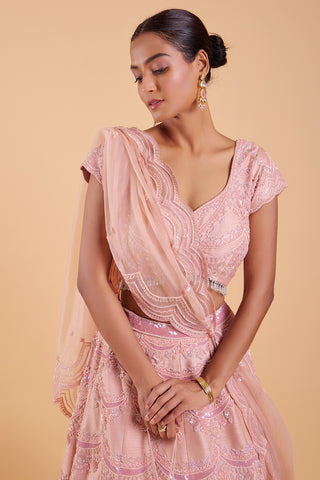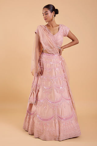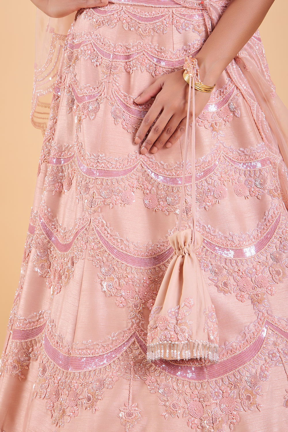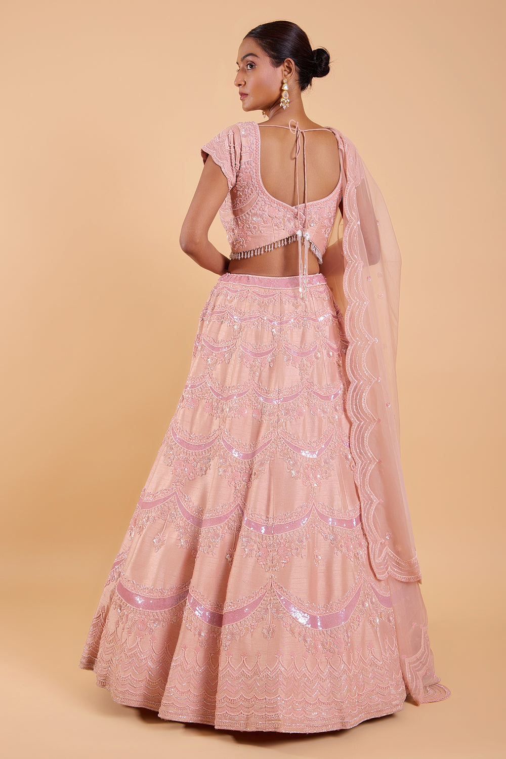 Peach Blush Hand Embroidered Silk Lehenga Set Sale