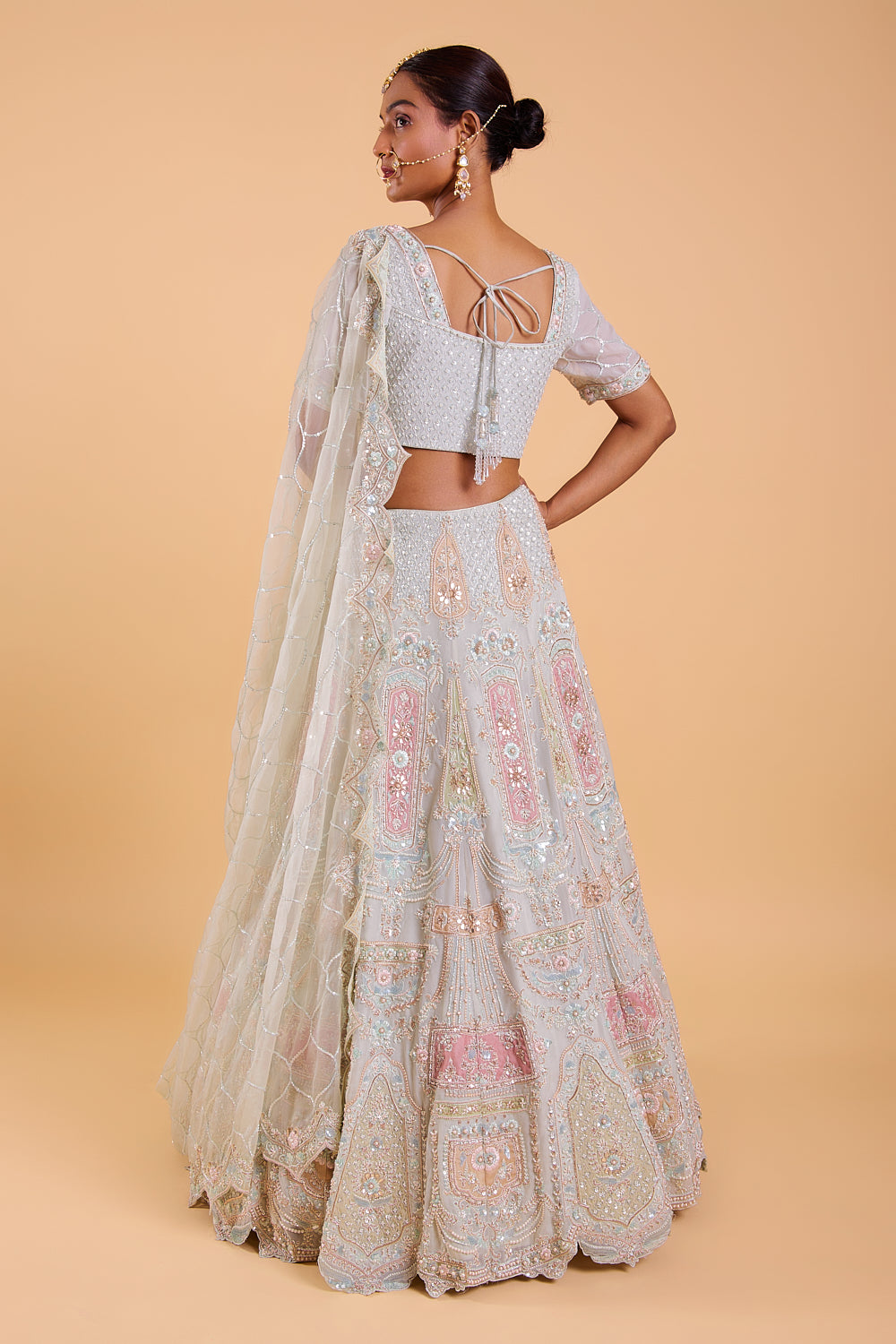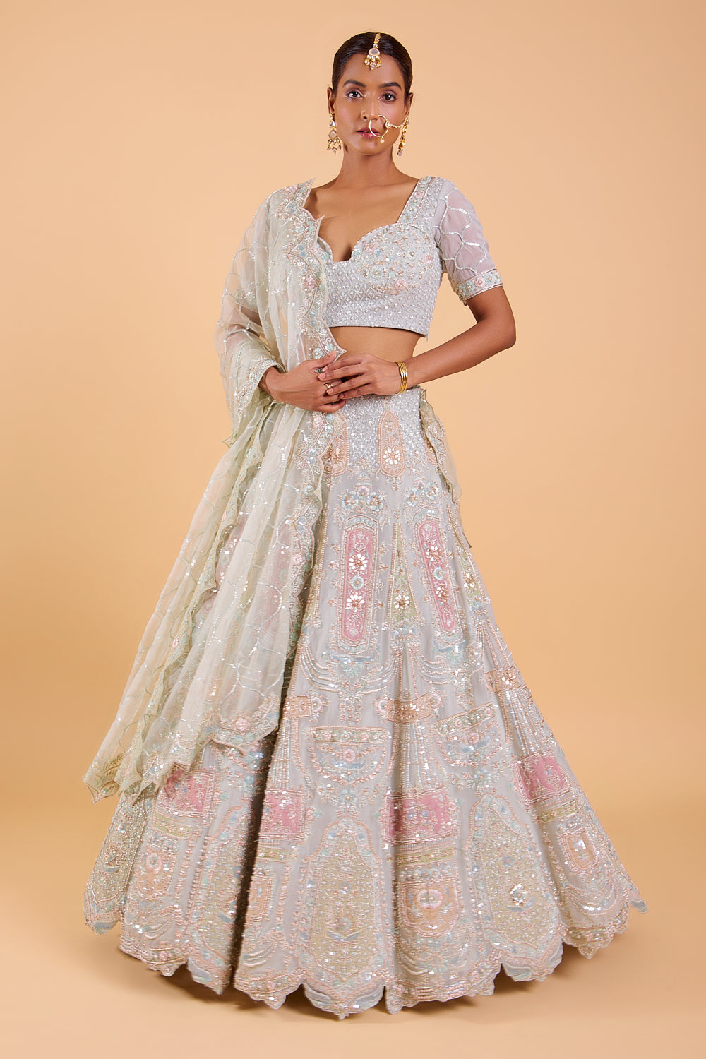 Vibrant Mint Bliss Organza Hand Embroidered Lehenga Set Sale